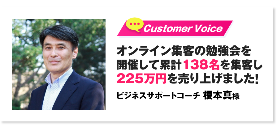 独立後、「Facebook集客実践塾」を立ち上げ、ビジネス未経験者でも3ヶ月以内に売上100〜300万円を達成できる集客テンプレートを開発。